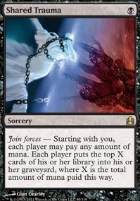 Join forces - Starting with you, each player may pay any amount of mana. Each player puts the top X cards of his or her library into his or her graveyard, where X is the total amount of mana paid this way.