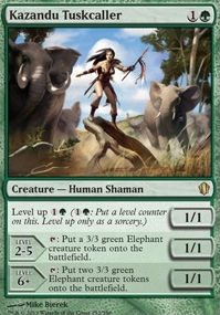 Level up {1}{G} ({1}{G}: Put a level counter on this. Level up only as a sorcery.) LEVEL 2-5 1/1 {T}: Put a 3/3 green Elephant creature token onto the battlefield. LEVEL 6+ 1/1 {T}: Put two 3/3 green Elephant creature tokens onto the battlefield.