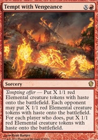 Tempting offer - Put X 1/1 red Elemental creature tokens with haste onto the battlefield. Each opponent may put X 1/1 red Elemental creature tokens with haste onto the battlefield. For each player who does, put X 1/1 red Elemental creature tokens with haste onto the battlefield.