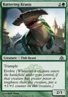 Trample Evolve (Whenever a creature enters the battlefield under your control, if that creature has greater power or toughness than this creature, put a +1/+1 counter on this creature.)