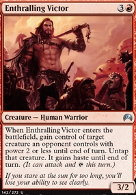 When Enthralling Victor enters the battlefield, gain control of target creature an opponent controls with power 2 or less until end of turn. Untap that creature. It gains haste until end of turn. (It can attack and {T} this turn.)