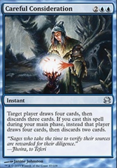 Target player draws four cards, then discards three cards. If you cast this spell during your main phase, instead that player draws four cards, then discards two cards.