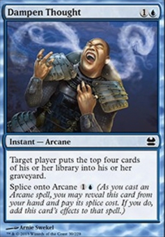 Target player puts the top four cards of his or her library into his or her graveyard. Splice onto Arcane {1}{U} (As you cast an Arcane spell, you may reveal this card from your hand and pay its splice cost. If you do, add this card's effects to that spell.)