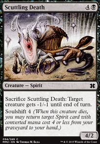 Sacrifice Scuttling Death: Target creature gets -1/-1 until end of turn. Soulshift 4 (When this creature dies, you may return target Spirit card with converted mana cost 4 or less from your graveyard to your hand.)